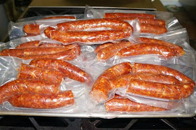ingredients. Stuff into sausage casings, and tie them off so that each sausage